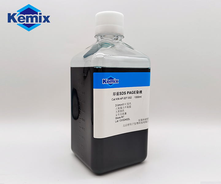 SDS PAGE Staining Buffer 是一種可(kě)以室溫下瞬時(shí)染色,無需脫色,無毒無刺激氣味的新型蛋白質PAGE膠染液。将SDS-PAGE浸于即藍(lán)染液中,置于搖床上(shàng)數(shù)分鍾後可(kě)見清晰條帶,依據蛋白PAGE膠條帶染色結果,進行(xíng)下一步實驗。可(kě)以節約大(dà)量時(shí)間(jiān),加速實驗進程。具有(yǒu)操作(zuò)便捷,靈敏度卓越,綠色環保的性能。此外本染液染色原理(lǐ)與傳統考染相同,可(kě)采用相同步驟切膠打質譜。